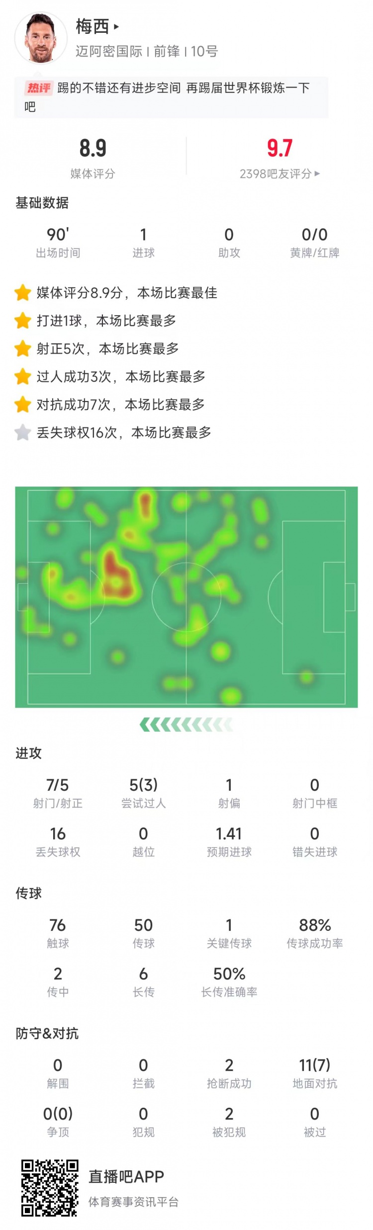 挑射破門!梅西本場數(shù)據(jù):7次射門5次射正,獲評8.9分全場最高 3月17日訊 在北京時間今天上午結(jié)束的美職聯(lián)比賽中,梅西取得進(jìn)球,幫助邁阿密國際客場2-1擊敗亞特蘭大聯(lián)。梅西本場比賽數(shù)據(jù):出場時間——90分鐘進(jìn)球——1射門——7(射正5)嘗試過人——5(成功3)丟 2025/03/17
