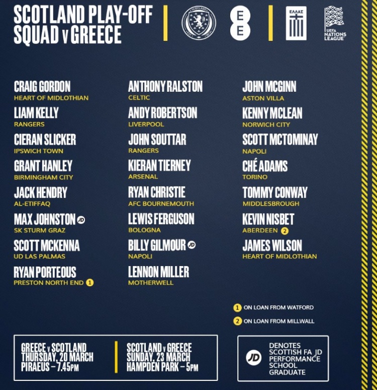 蘇格蘭大名單:羅伯遜、麥克托米奈領(lǐng)銜,蒂爾尼在列 3月11日訊 即將到來的歐國(guó)聯(lián)A聯(lián)賽升級(jí)賽,蘇格蘭將和希臘進(jìn)行兩回合的比賽。目前,蘇格蘭已經(jīng)公布了大名單,羅伯遜、麥克托米奈領(lǐng)銜,蒂爾尼在列。以下為具體名單:門將:克雷格-戈登(哈茨)、利亞姆-凱利( 2025/03/12