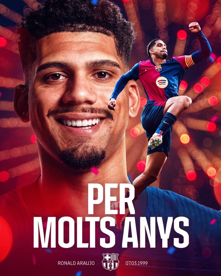 阿勞霍迎來26歲生日,巴薩官推發(fā)文送祝福  3月7日訊 今天是巴薩后衛(wèi)羅納德-阿勞霍的26歲生日,俱樂部官推發(fā)文為他送上祝福。阿勞霍在1999年3月7日出生于烏拉圭里埃維拉,他在2018年加入巴薩B隊(duì),2020年進(jìn)入一線隊(duì),至今他已經(jīng)為巴薩一線  2025/03/07