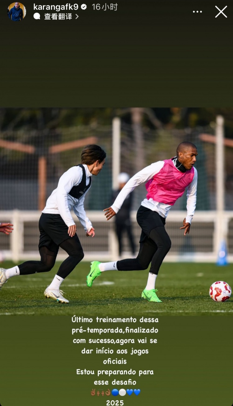 卡蘭加社媒展望新賽季:賽季前最后一練結(jié)束 為新挑戰(zhàn)做好準(zhǔn)備 2月21日訊 昨天,大連英博外援卡蘭加更新社媒,展望了即將到來的新賽季??ㄌm加在社媒曬照并配文寫道:“新賽季開賽前最后一次訓(xùn)練圓滿結(jié)束,現(xiàn)在新賽季的比賽要正式開始了,我也正為這個挑戰(zhàn)在做著準(zhǔn)備?!?月 2025/02/21