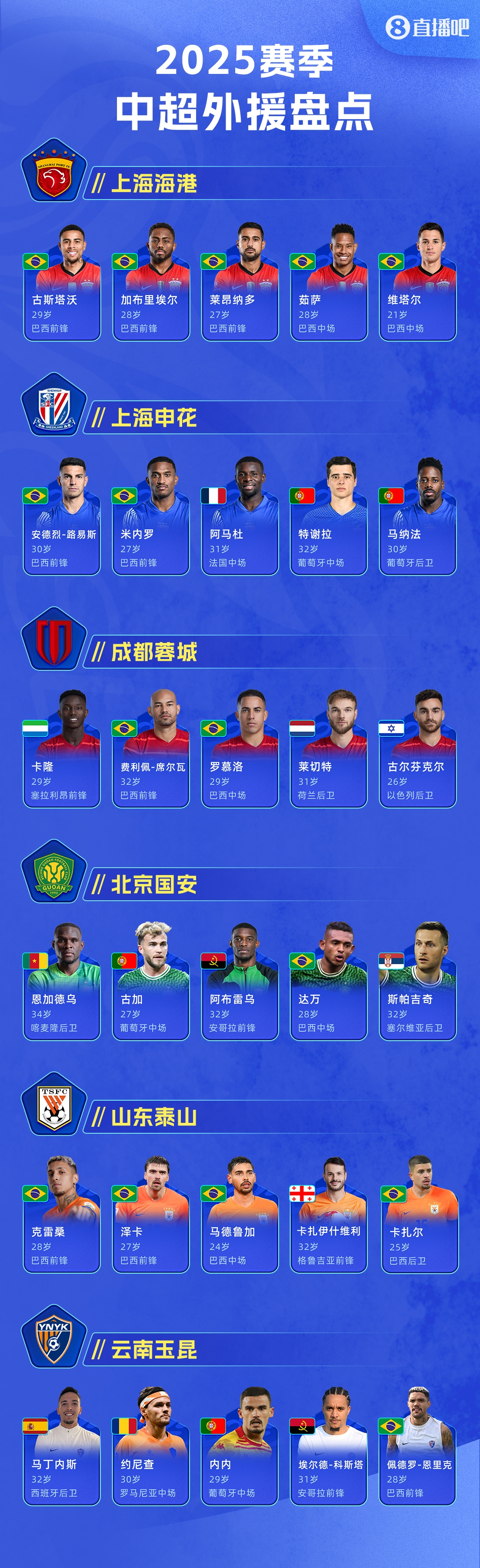 【直播吧】2025中超外援盤點:后奧斯卡時代16隊哪家外援最強? 2025賽季中超聯(lián)賽明日就將帷幕,帶來了16支球隊冬窗后最新外援陣容盤點。送別海港外援奧斯卡之后,中超聯(lián)賽徹底步入后金元時代。這這個追求性價比的年代,克雷桑450萬歐的身價已經(jīng)冠絕中超。你認為哪家俱樂 2025/02/21