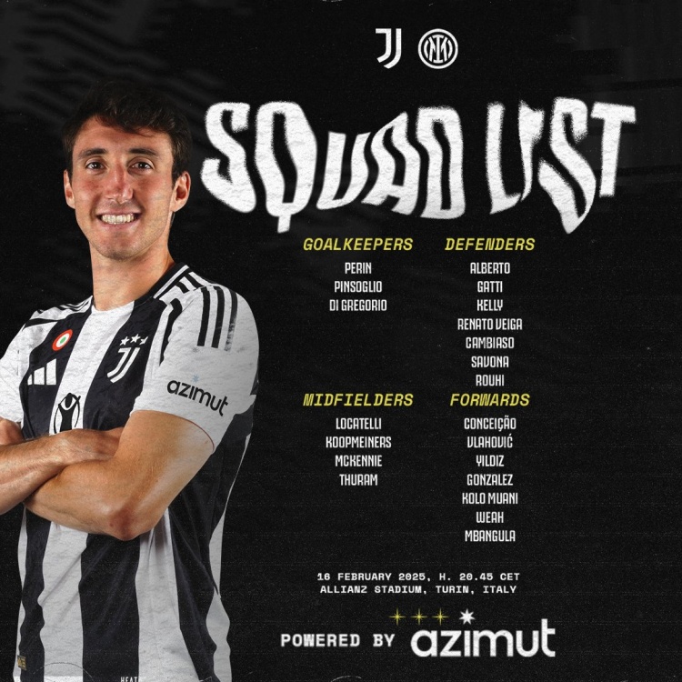 尤文國(guó)家德比大名單:穆阿尼、孔塞桑、坎比亞索在列,路易斯缺席 2月16日訊 北京時(shí)間明天凌晨3點(diǎn)45分,尤文將在意甲第25輪比賽中主場(chǎng)對(duì)陣國(guó)米。尤文公布了此役的球員名單,坎比亞索復(fù)出,道格拉斯-路易斯、卡巴爾、米利克、布雷默、卡盧盧缺席。尤文對(duì)陣國(guó)米大名單門將: 2025/02/16