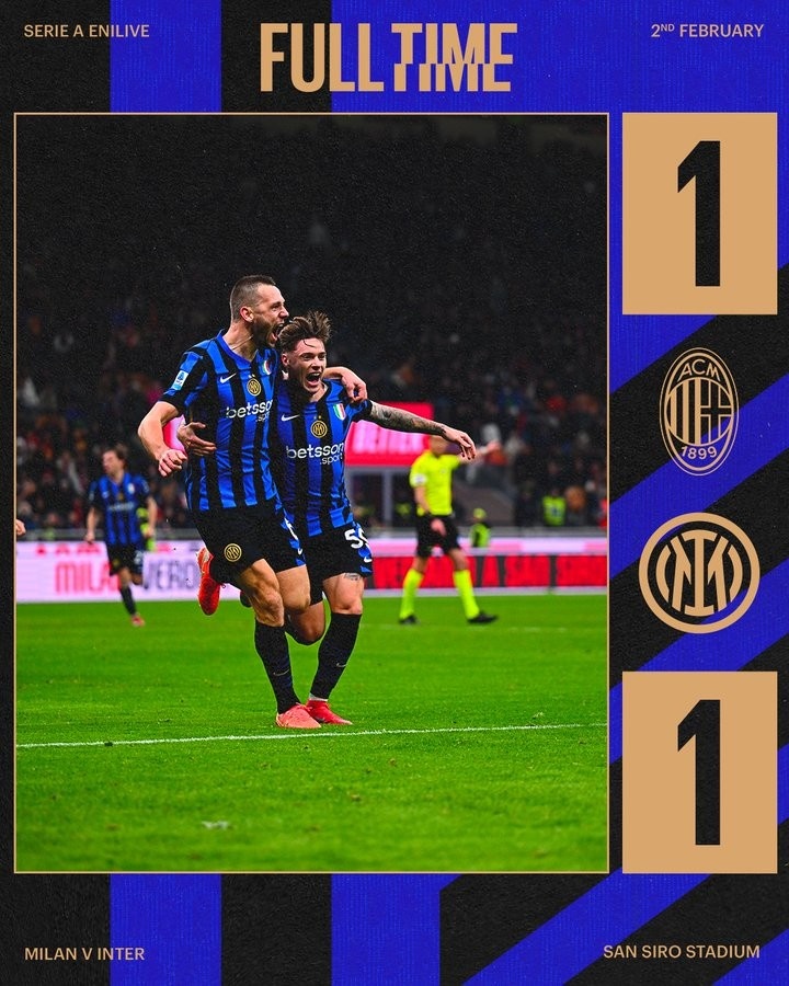 本賽季“米蘭德比”共打入10球,其中3球出現(xiàn)在比賽第89分鐘后 2月3日訊 意甲第23輪上演“米蘭德比”,最終AC米蘭與國(guó)際米蘭1-1握手言和。據(jù)數(shù)據(jù)平臺(tái)OPTA統(tǒng)計(jì),本賽季在已進(jìn)行的3次“米蘭德比”中共產(chǎn)生10個(gè)進(jìn)球,其中有3個(gè)進(jìn)球出現(xiàn)在比賽第89分鐘之后,最近 2025/02/03