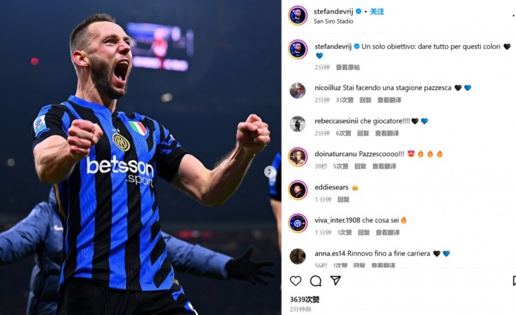 德弗里社媒曬怒吼照慶祝絕平:唯一的目標(biāo)就是為國(guó)米竭盡全力 2月3日訊 國(guó)米在本輪意甲1-1絕平AC米蘭,德弗里最后時(shí)刻門(mén)前建功。第93分鐘,巴雷拉調(diào)整后左腳傳中,扎萊夫斯基后點(diǎn)胸部一停,德弗里門(mén)前抽射扳平比分。德弗里也在賽后通過(guò)社媒曬出自己怒吼慶祝的照片,并 2025/02/03