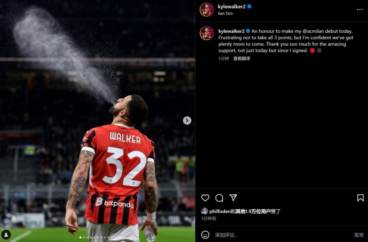 沃克:很榮幸迎來(lái)首秀遺憾沒(méi)能全取三分,感謝加盟以來(lái)對(duì)我的支持 2月3日訊 本輪意甲米蘭德比中,米蘭1-1遭國(guó)米絕平。賽后,迎來(lái)米蘭生涯首秀的沃克更新社媒,向球迷表示感謝。沃克寫(xiě)道:非常榮幸能在今天迎來(lái)我的米蘭生涯首秀。很遺憾我們沒(méi)能全取三分,但我相信我們未來(lái)還會(huì) 2025/02/03
