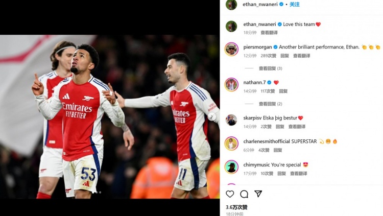 凝聚力拉滿!恩瓦內(nèi)里社媒曬慶祝照:我愛(ài)這支球隊(duì) 2月3日訊 阿森納在本輪英超焦點(diǎn)戰(zhàn)迎戰(zhàn)曼城,最終5-1大勝老對(duì)手。小將恩瓦內(nèi)里也取得進(jìn)球。第90+3分鐘,替補(bǔ)登場(chǎng)的恩瓦內(nèi)里禁區(qū)前沿盤(pán)帶后轟出一腳世界波直掛遠(yuǎn)角。恩瓦內(nèi)里也在賽后通過(guò)社媒曬出自己的慶祝 2025/02/03