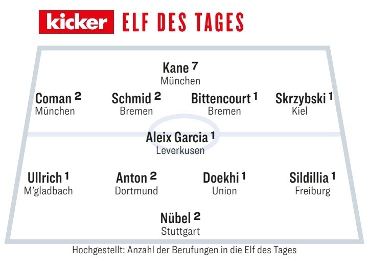 踢球者評(píng)本輪德甲最佳陣:凱恩領(lǐng)銜,科曼、努貝爾在列 2月3日訊 德甲本輪比賽已經(jīng)全部完賽,《踢球者》也評(píng)出了本輪最佳陣容,拜仁和不萊梅各2將。踢球者評(píng)本輪德甲最佳陣:4141中鋒:凱恩(拜仁)、前衛(wèi):科曼(拜仁)、斯赫米德(不萊梅)、比滕考特(不萊梅) 2025/02/03