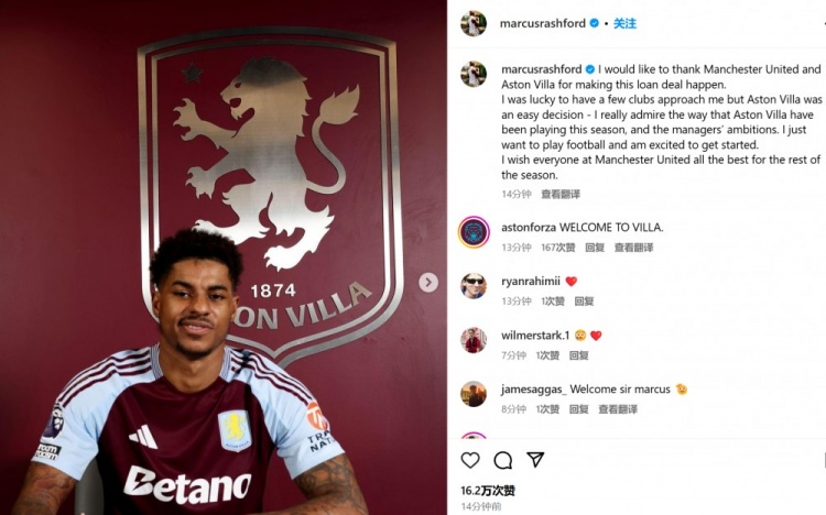 ??告別紅魔!拉什福德與維拉簽約照已流出,只待正式官宣 2025/02/03