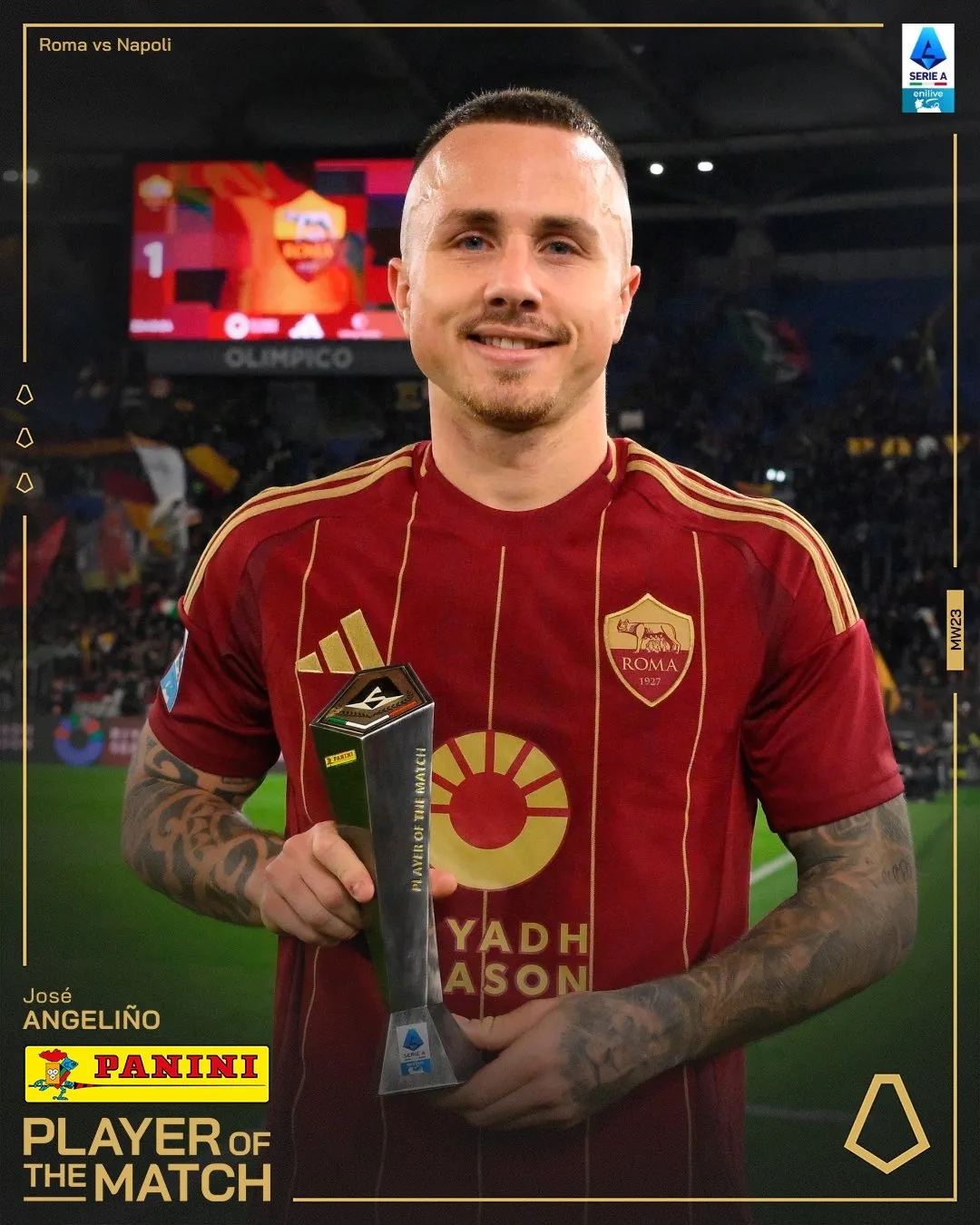 打進(jìn)絕平球!意甲官方:安吉利諾當(dāng)選羅馬vs那不勒斯全場(chǎng)最佳 2月3日訊 羅馬在本輪意甲1-1絕平那不勒斯,進(jìn)球功臣安吉利諾在賽后當(dāng)選意甲官方全場(chǎng)最佳。第90+2分鐘,薩勒馬科爾斯分球右路,自己再前插到禁區(qū)內(nèi)右側(cè)接球,無(wú)人跟防下傳中到后點(diǎn),安吉利諾凌空絕平。除了 2025/02/03