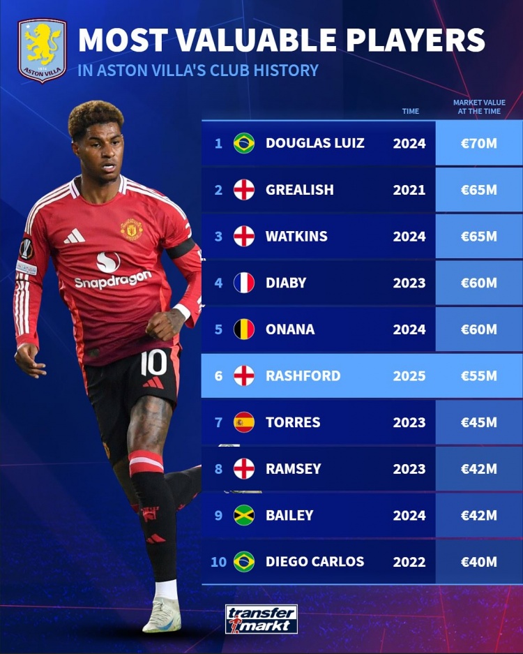 維拉隊(duì)史德轉(zhuǎn)身價(jià)榜:路易斯7000萬(wàn)歐居首,拉什福德5500萬(wàn)歐第6 2月3日訊 曼聯(lián)前鋒拉什福德租借加盟維拉,德國(guó)轉(zhuǎn)會(huì)市場(chǎng)排出了維拉隊(duì)史球員德轉(zhuǎn)身價(jià)排名,拉什福德以5500萬(wàn)歐排名第6位。維拉隊(duì)史球員德轉(zhuǎn)身價(jià)排名:道格拉斯-路易斯——7000萬(wàn)歐格拉利什——6500萬(wàn) 2025/02/03