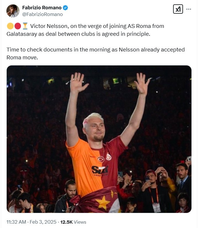 羅馬諾:尼爾森即將從加拉塔薩雷加盟羅馬,俱樂(lè)部間已達(dá)原則協(xié)議 2月3日訊 羅馬諾報(bào)道,維克托-尼爾森即將從加拉塔薩雷加盟羅馬,雙方俱樂(lè)部的交易已經(jīng)達(dá)成了原則性協(xié)議。當(dāng)?shù)貢r(shí)間2月3日早上,將檢查交易文件,而維克托-尼爾森已經(jīng)同意這筆轉(zhuǎn)會(huì)。維克托-尼爾森26歲,是一 2025/02/03