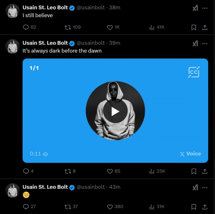 真紅魔!曼聯(lián)輸球后博爾特發(fā)推:我仍然有信心,黎明前總是黑暗的 2月3日訊 本輪英超比賽中,曼聯(lián)0-2不敵水晶宮。賽后,知名曼聯(lián)球迷、短跑巨星博爾特更新動(dòng)態(tài),表示仍然對(duì)球隊(duì)有信心。博爾特發(fā)了一個(gè)心情沮喪的表情包,然后寫道:黎明前總是黑暗的,我仍然有信心。目前的英超 2025/02/03
