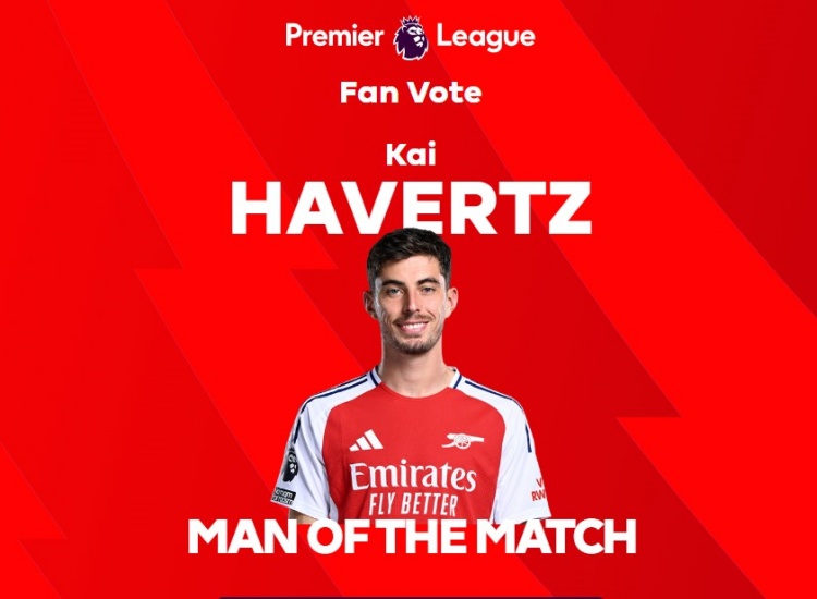 傳射建功!英超官方:哈弗茨當(dāng)選阿森納5-1曼城全場(chǎng)最佳 2月3日訊 在本輪英超,阿森納5-1大勝曼城。本場(chǎng)比賽哈弗茨傳射建功,賽后他也以30.8%的得票率當(dāng)選英超官方本場(chǎng)最佳球員。 2025/02/03
