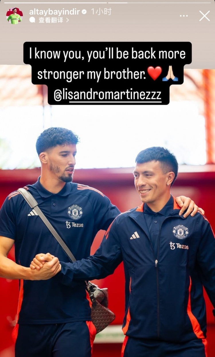 巴因德?tīng)柊参恐貍睦R:你復(fù)出時(shí)會(huì)更加強(qiáng)大,我的兄弟? 2月3日訊 英超第24輪,曼聯(lián)不敵水晶宮。比賽中,利桑德羅-馬丁內(nèi)斯膝蓋遭遇重傷,痛哭不止被擔(dān)架抬離場(chǎng)。賽后,巴因德?tīng)柛律缑?,向利馬送上安慰。巴因德?tīng)枌?xiě)道:我知道你,你復(fù)出時(shí)會(huì)更加強(qiáng)大,我的兄弟?。 2025/02/03