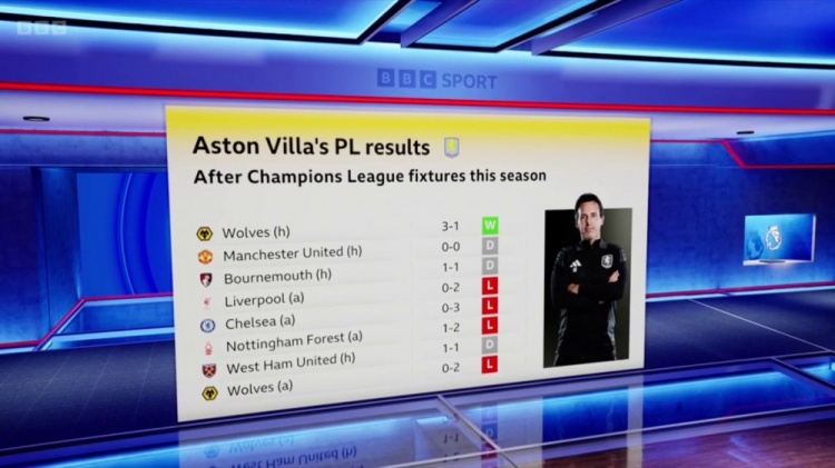 雙線作戰(zhàn)吃力!維拉本賽季歐冠之后聯(lián)賽戰(zhàn)績(jī)1勝3平4負(fù) 2月2日訊 英超第24輪比賽,維拉客場(chǎng)0-2不敵狼隊(duì)。BBC統(tǒng)計(jì)了本賽季維拉歐冠比賽之后的聯(lián)賽戰(zhàn)績(jī),8場(chǎng)聯(lián)賽維拉僅取勝1場(chǎng)。本賽季維拉歐冠之后聯(lián)賽戰(zhàn)績(jī):維拉3-1狼隊(duì)維拉0-0曼聯(lián)維拉1-1伯恩茅斯利 2025/02/02