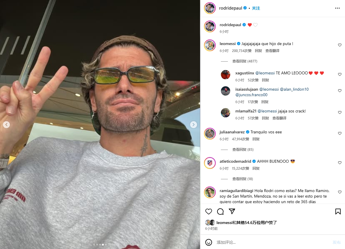 又耍帥!德保羅曬帥照,梅西評(píng)論:哈哈哈哈,你這狗娘養(yǎng)的 02月02日訊 德保羅今日在ins曬出個(gè)人帥照,照片中他在大都會(huì)球場(chǎng)身穿寬松運(yùn)動(dòng)衫和褲子,戴著墨鏡和帽子。而這位阿根廷國(guó)家隊(duì)的潮人代表再次遭到了隊(duì)友調(diào)侃。梅西在評(píng)論區(qū)評(píng)論道:“哈哈哈哈,你這狗娘養(yǎng)的。 2025/02/02