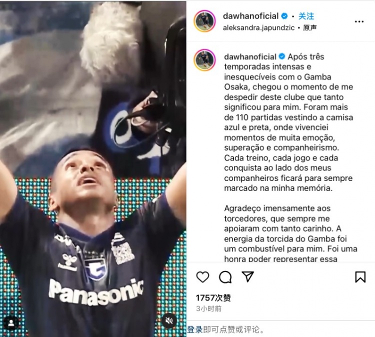 達(dá)萬(wàn)告別大阪鋼巴:很榮幸效力3個(gè)賽季 有激情有失落但更多是陪伴 2月2日訊 北京國(guó)安今日官方宣布,巴西外援達(dá)萬(wàn)從大阪鋼巴加盟球隊(duì),球員將身披23號(hào)球衣。在轉(zhuǎn)會(huì)官宣后,達(dá)萬(wàn)社媒發(fā)布視頻集錦,向大阪鋼巴球迷告別。他寫(xiě)道:在大阪鋼巴經(jīng)歷了緊張刺激但讓人難忘的三個(gè)賽季后, 2025/02/02