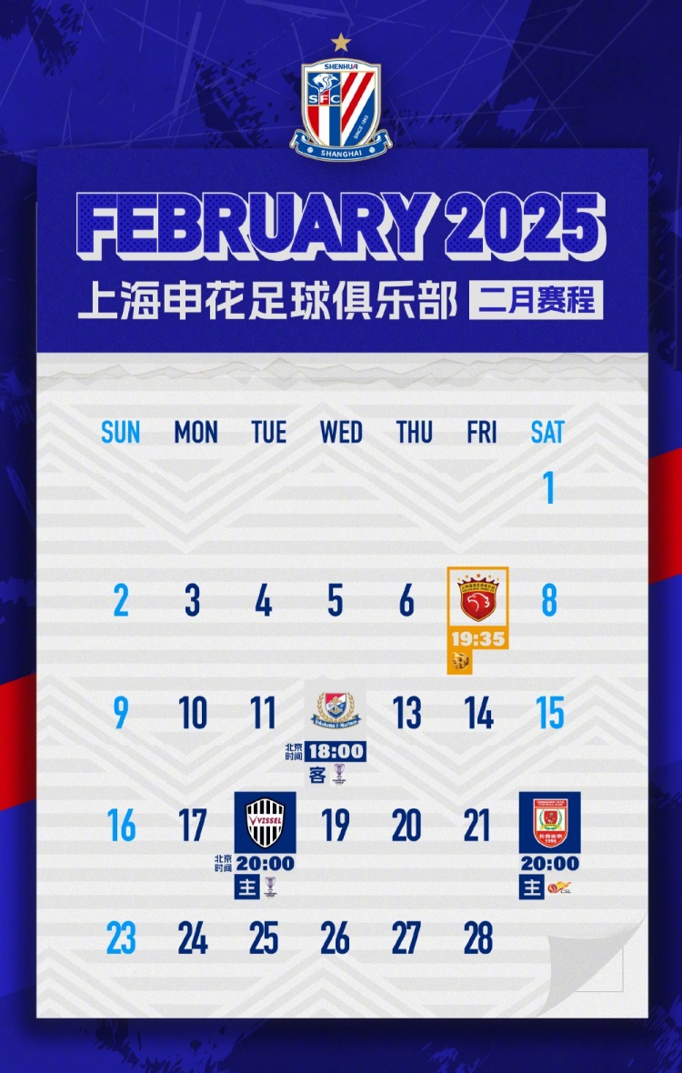 上海申花二月賽歷 ??? 2025/02/02