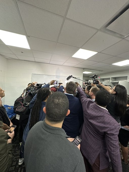 這陣勢!巴特勒采訪現(xiàn)場被圍得水泄不通 3月26日訊 今天結(jié)束的一場NBA常規(guī)賽,勇士在客場86比112不敵熱火。比賽結(jié)束后,巴特勒的采訪現(xiàn)場被媒體圍得水泄不通。從2019-20賽季到本賽季,巴特勒在熱火效力5個半賽季,兩次帶隊打進(jìn)總決賽, 2025/03/26