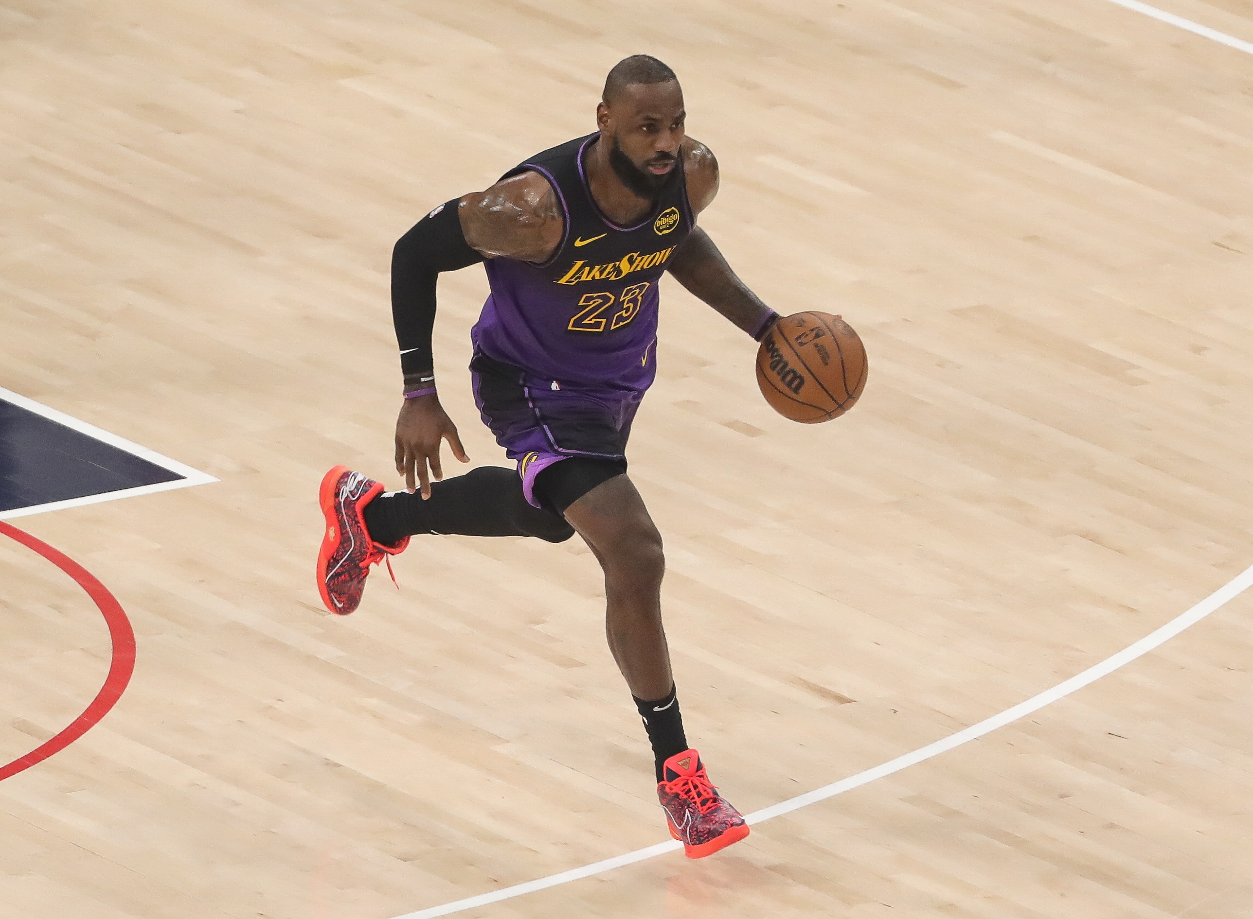 開局就開啟得分模式!詹姆斯首節(jié)9投6中砍13分 另有3板2助 2月2日訊 NBA常規(guī)賽,湖人首節(jié)和尼克斯打成32平。湖人球星詹姆斯開局就打得十分強(qiáng)勢(shì),作為球隊(duì)主攻點(diǎn)也是相當(dāng)高效。他首節(jié)打了9分27秒,9投6中,其中三分1中0,罰球1中1,得到13分3籃板2助攻。 2025/02/02