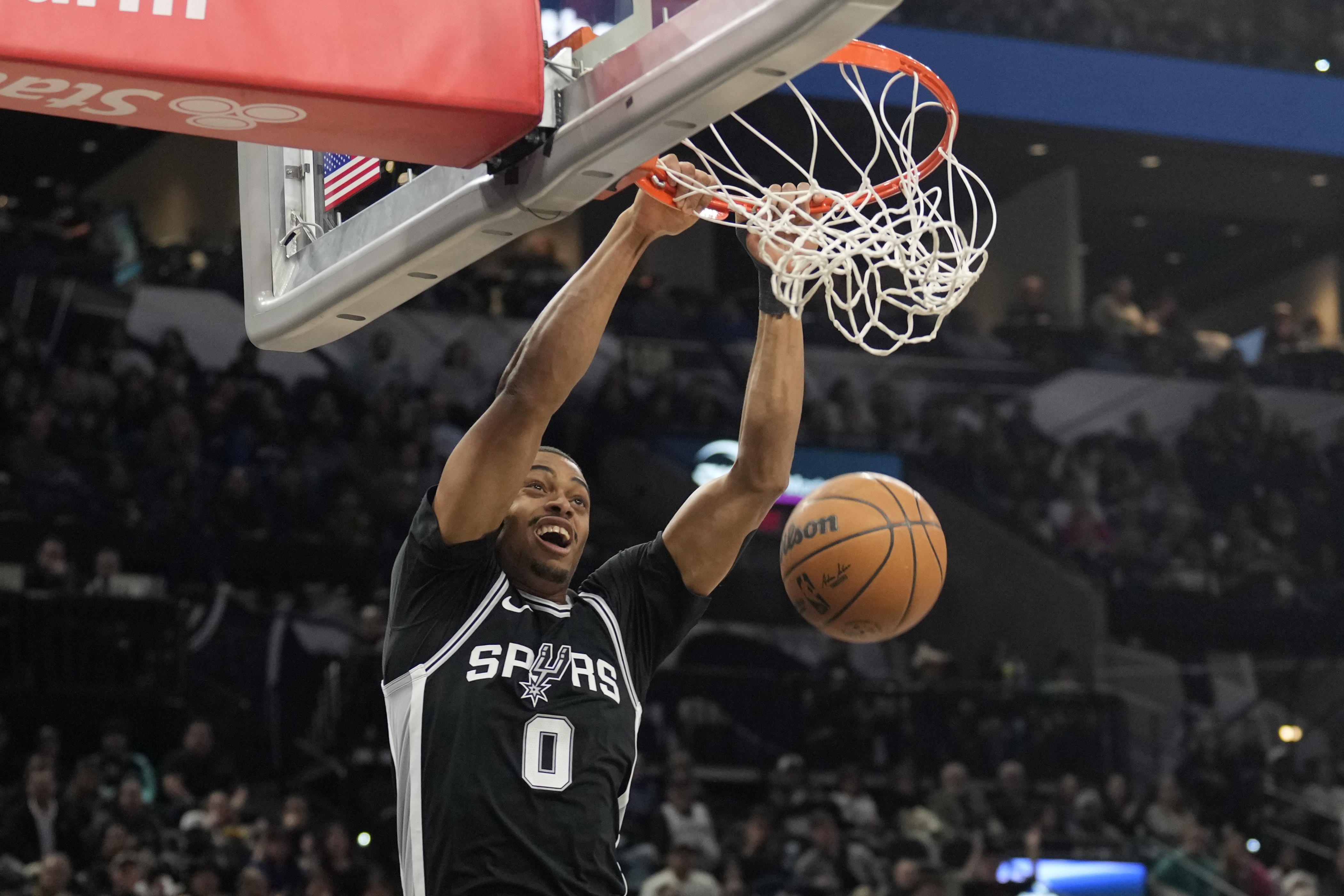 頻頻殺傷!凱爾登10中4砍半場最高17分 罰球8中7 2月2日訊 NBA常規(guī)賽,馬刺半場56-60落后熱火。上半場,馬刺球員凱爾登-約翰遜頻頻沖擊籃筐造成殺傷,打了13分鐘10投4中,三分4中2、罰球8中7拿到半場最高17分外加3籃板1助攻。 2025/02/02