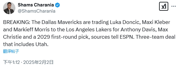 這是真的!Shams再次確認湖人和獨行俠交易 并補充了細節(jié) 02月02日訊 據(jù)名記Shams報道,消息人士透露,獨行俠將把東契奇、克萊伯和莫里斯交易給湖人,換來濃眉、克里斯蒂和2029年首輪。Shams隨后還再次確認了這條消息,并補充了交易細節(jié)。值得一提的是, 2025/02/02