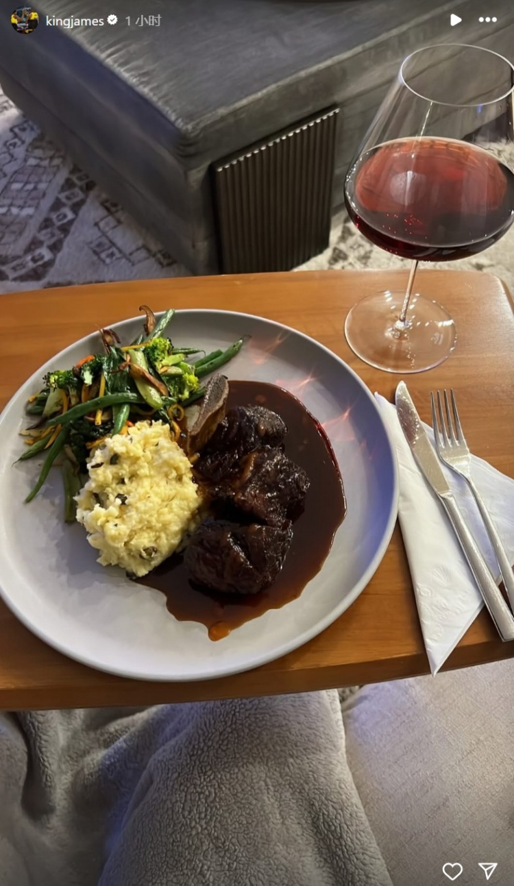 結(jié)束東部四連客!詹姆斯曬晚餐:回到家里真的是太高興了 2月3日訊 今天,湖人球星勒布朗-詹姆斯在INS曬出了自己的晚餐,并寫道:“回到家里真的是太高興了?!弊蛱欤嗽诳蛨鰮魯∧峥怂?,這也是他們東部四連客的最后一場比賽,下一場比賽他們將做客挑戰(zhàn)快船。 2025/02/03
