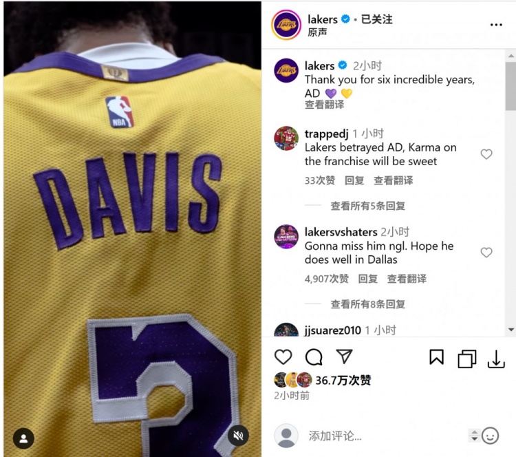 詹姆斯又轉(zhuǎn)發(fā)!湖人官方再次致謝濃眉:謝謝你這難以置信的6年 2月3日訊 今天湖人官方曬出短片致謝濃眉,寫道:“謝謝你這難以置信的六年,AD????????”詹姆斯則是轉(zhuǎn)發(fā)了該內(nèi)容。相關(guān)新聞:湖人官方曬總冠軍照致謝濃眉:你永遠是洛杉磯的傳奇 謝謝你????難分難舍!詹姆斯轉(zhuǎn) 2025/02/03