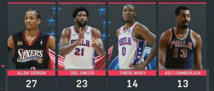 馬克西連續(xù)14場(chǎng)得25+ 超越張伯倫上升至76人隊(duì)史第三&僅次AI大帝 2025/02/03