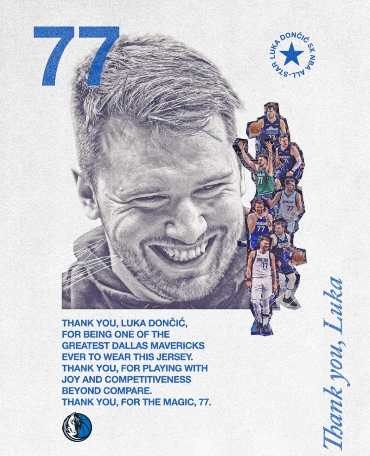 獨(dú)行俠官方致謝東契奇:你是隊(duì)史最偉大的球員之一 感謝盧卡魔法 2月3日訊 NBA歷史級(jí)別的重磅三方交易官宣完成,東契奇加盟湖人,濃眉赴獨(dú)行俠,爵士出11萬(wàn)美元得到兩個(gè)次輪和17號(hào)秀席菲諾。獨(dú)行俠官方制作海報(bào)致謝東契奇,官方列出了東契奇的生涯榮譽(yù),詳情如下:年度最 2025/02/03