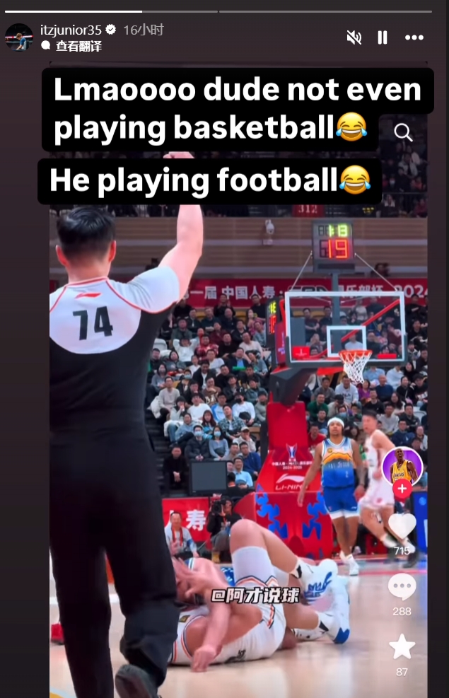 洛夫頓更新INS吐槽了CBA的犯規(guī),隨后再次點(diǎn)名艾孜麥提,寫道:“笑死我了,這哥們就不是來打籃球的????,來打橄欖球的吧。????”