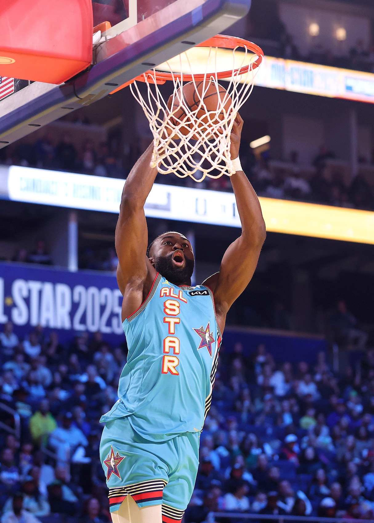 談及全明星新賽制,杰倫-布朗表示:“如果你希望球員們打得更有對(duì)抗性,老是中斷比賽可不理想。但大家還是玩得開心。所有那些老將,像我們這些膝蓋和后背都有傷的,我們贏了,所以沒人該找借口。不過,這賽制確實(shí)不太理想。”