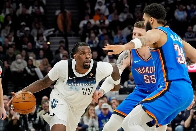 沒有戈貝爾和蘭德爾的森林狼,遇上雙塔都在的雷霆,交出了倒反天罡的賽果。狼全場(chǎng)拿下34.5%的前場(chǎng)籃板率,二次進(jìn)攻得到23分,近筐頻繁大吃小,還把雷霆的進(jìn)攻效率限制在103.2,攻防兩端的答卷都可以給滿分,有了點(diǎn)去年季后賽他們對(duì)陣太陽的風(fēng)采。