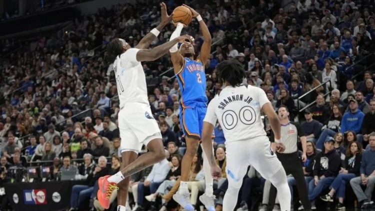 狼的策略很明確。沒有戈貝爾,狼擺出了一套五外陣容,外有華子開干,內(nèi)有里德大吃小,三人得分上20,五人得分上雙。防守則在聯(lián)防與夾擊誤持球人之間來回切換,擾亂SGA從三分線外持球發(fā)起的節(jié)奏,考驗(yàn)雷霆的轉(zhuǎn)移球和外線回應(yīng)。攻防兩端,狼都打到了雷霆的痛點(diǎn)。