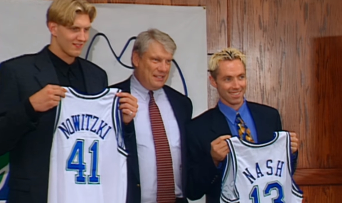 然而,事情并未如預(yù)期般發(fā)展。三個(gè)順位之后,獨(dú)行俠管理層真正心儀的新秀——德克-諾維茨基被雄鹿截胡,一位來自德國(guó)維爾茨堡、身高2.13米、投籃精準(zhǔn)的20歲年輕人。當(dāng)諾維茨基的名字被叫到時(shí),溫哥華的通用汽車體育館內(nèi)響起了噓聲,這可能是因?yàn)橹Z維茨基當(dāng)時(shí)還沒多少名氣,也可能是因?yàn)橐恍㎞BA球迷對(duì)歐洲球員抱有偏見,認(rèn)為他們球風(fēng)偏軟、速度緩慢。