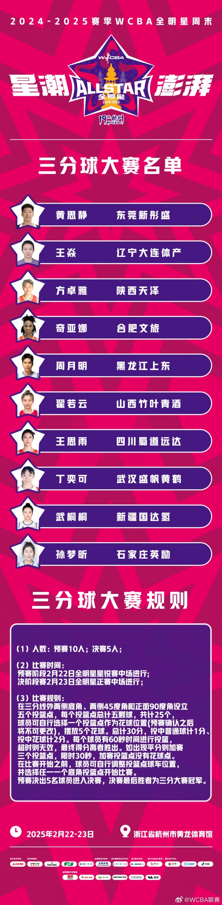 2024-2025賽季WCBA全明星單項賽球員名單火熱出爐!