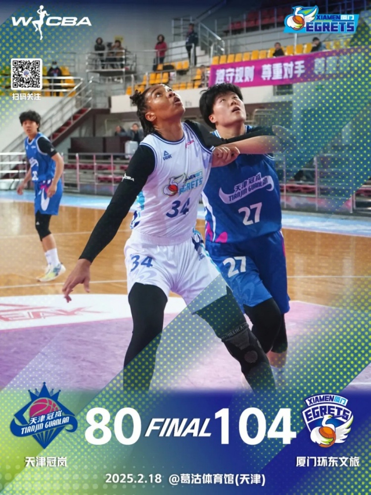 末節(jié)決戰(zhàn),肖婉鈺三分果斷命中,馬丁中投再進,廈門環(huán)東文旅順勢拉開30分以上領(lǐng)先。隨后雙方都換上替補年輕球員練兵,天津女籃轟出9-0小高潮追分,廖麗華突破上籃止血回應,分差始終保持在20分以上,最終廈門環(huán)東文旅104-80大勝天津冠嵐,這也是球隊隊史單場比賽最高得分。