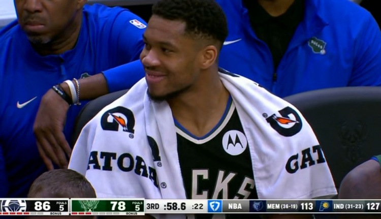 2+1&暴扣&急停虛晃!小波特連砍7分 場(chǎng)下的字母哥露出笑容