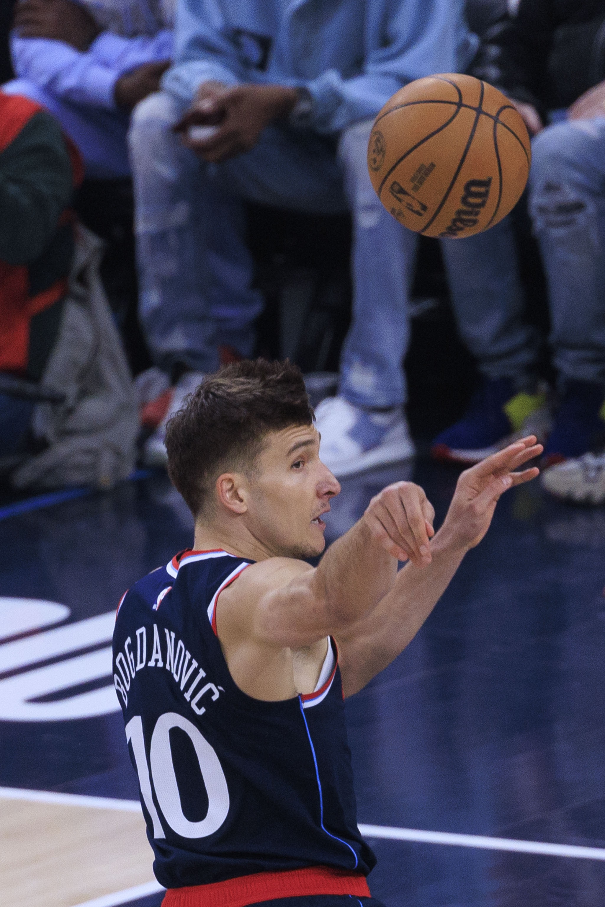此役,博格丹-博格達(dá)諾維奇出戰(zhàn)29分15秒,投籃13中4,三分8中1,罰球3中2,得到11分1籃板2助攻1搶斷。