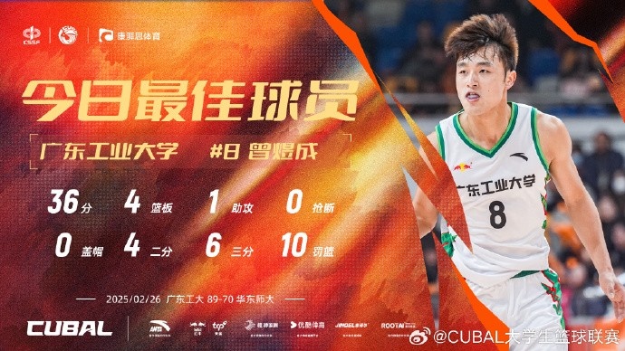 今日的MVP給到廣東工業(yè)大學(xué)8號曾煜成,在東南賽區(qū)的揭幕戰(zhàn)中對陣華東師大拿下36分4籃板1助攻的成績,成功率隊拿下首勝! 標(biāo)簽: CBA 中國籃球 籃球 CUBAL 轉(zhuǎn)載