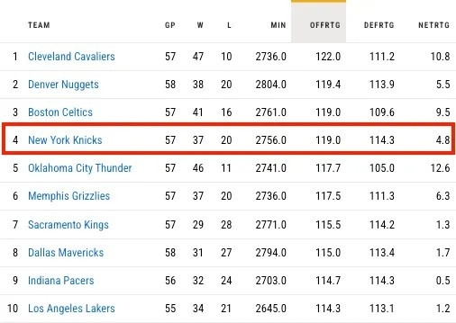 而且,我認為錫伯杜還沒有完全點出尼克斯的弊病——他們之所以高端局萎靡,除了防守體系總是崩潰,在頂級強隊的防守下,進攻不振也是問題所在。
