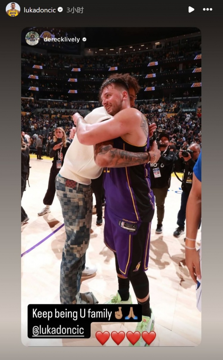 獨行俠球員萊夫利更新IG曬出自己與東契奇擁抱合照,并配文:“(我)會一直把你當(dāng)家人@東契奇?!?/p>