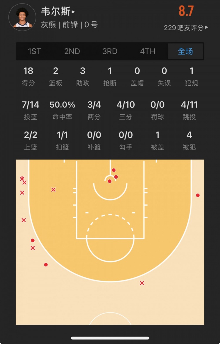 灰熊39號秀 杰倫-韋爾斯 登場38.6分鐘