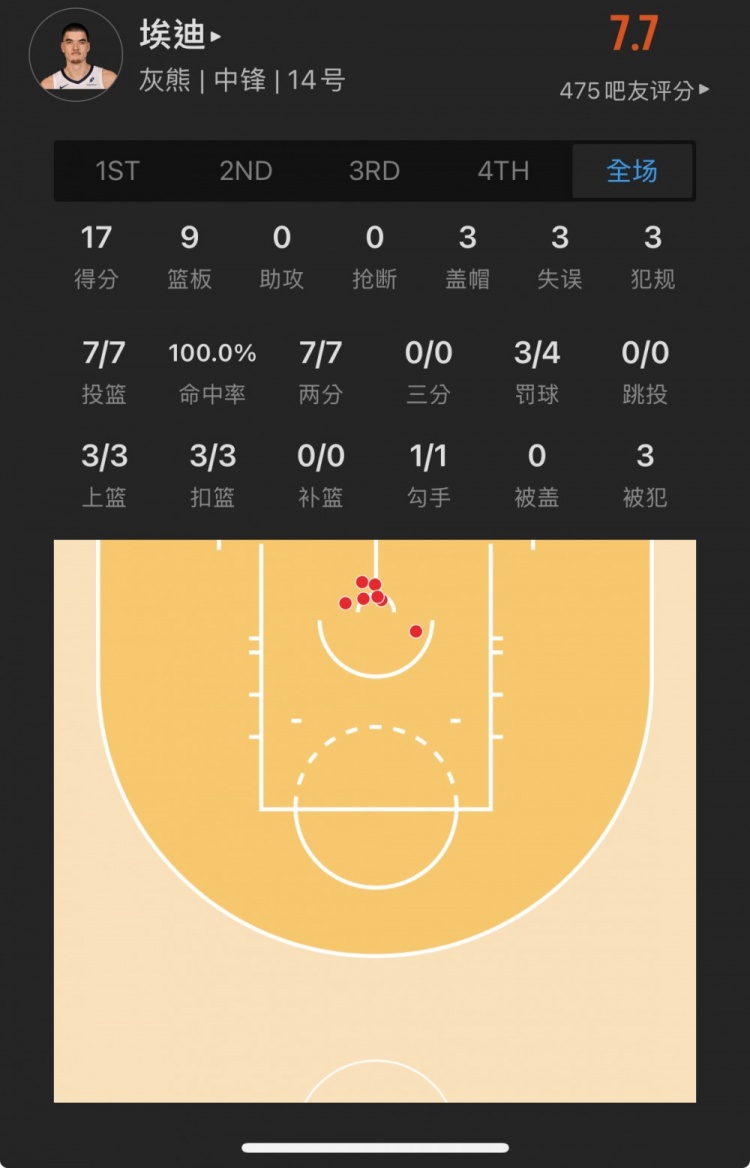 灰熊9號秀 扎克-埃迪 登場26.2分鐘