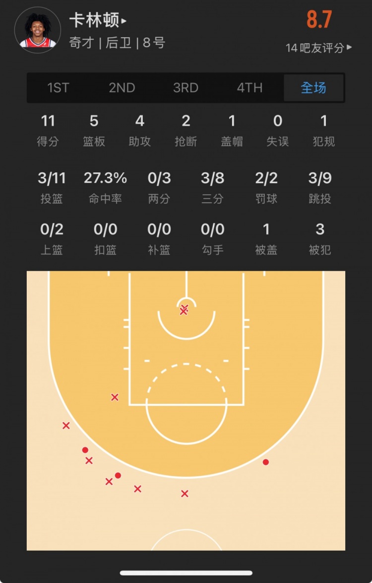 奇才14號秀 卡爾頓-卡林頓 登場31.8分鐘