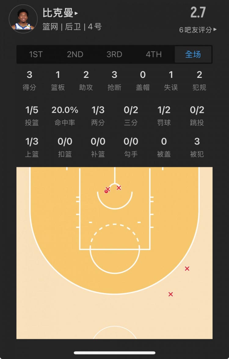 籃網(wǎng)落選秀 里斯-比克曼 登場26.9分鐘