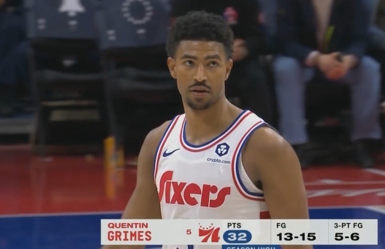 目前比賽進行到第三節(jié),76人球員格萊姆斯狀態(tài)火熱,已經(jīng)15中13,三分球6中5,罰球1中1,砍下賽季新高的32分,此前最高分為30分。