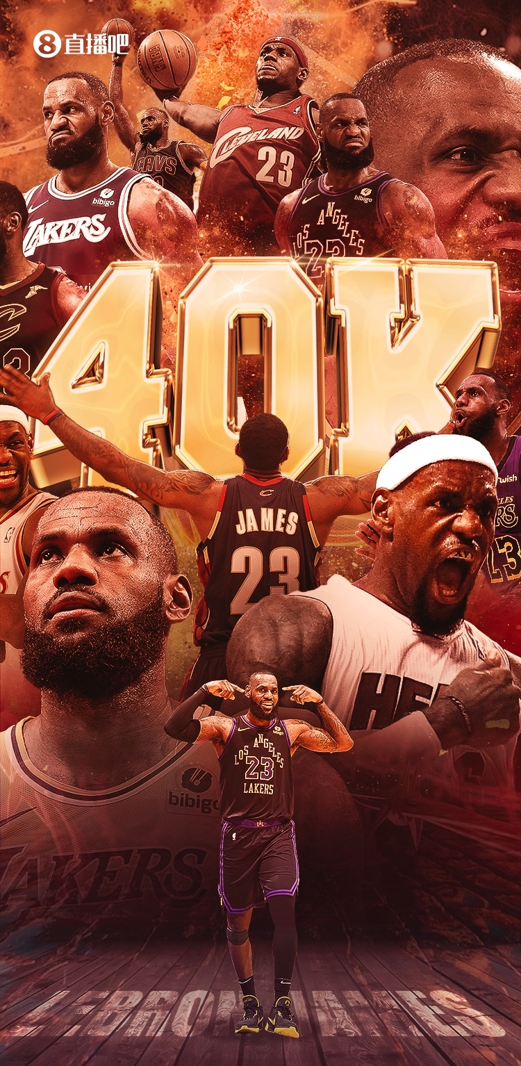 去年今日:詹姆斯生涯總得分突破40000分 NBA歷史首人
