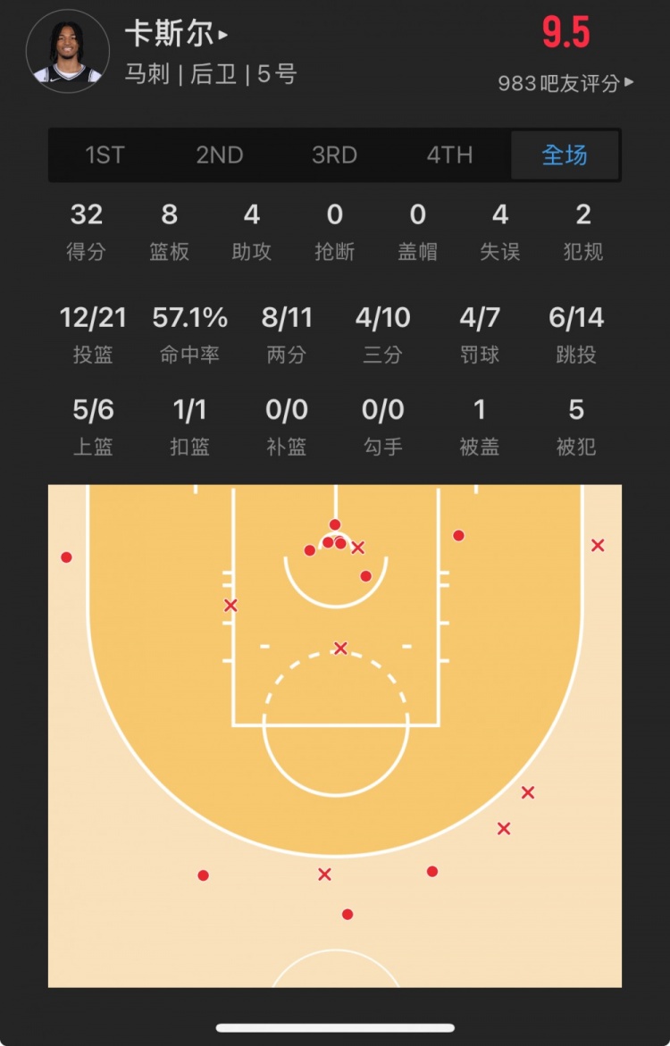 馬刺4號(hào)秀 斯蒂芬-卡斯?fàn)?登場(chǎng)31.9分鐘