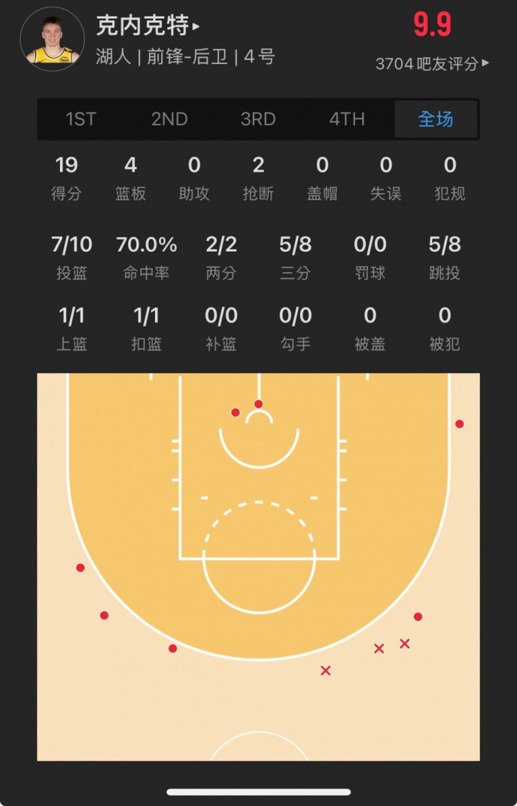 湖人17號(hào)秀 道爾頓-克內(nèi)克特 登場(chǎng)24.9分鐘